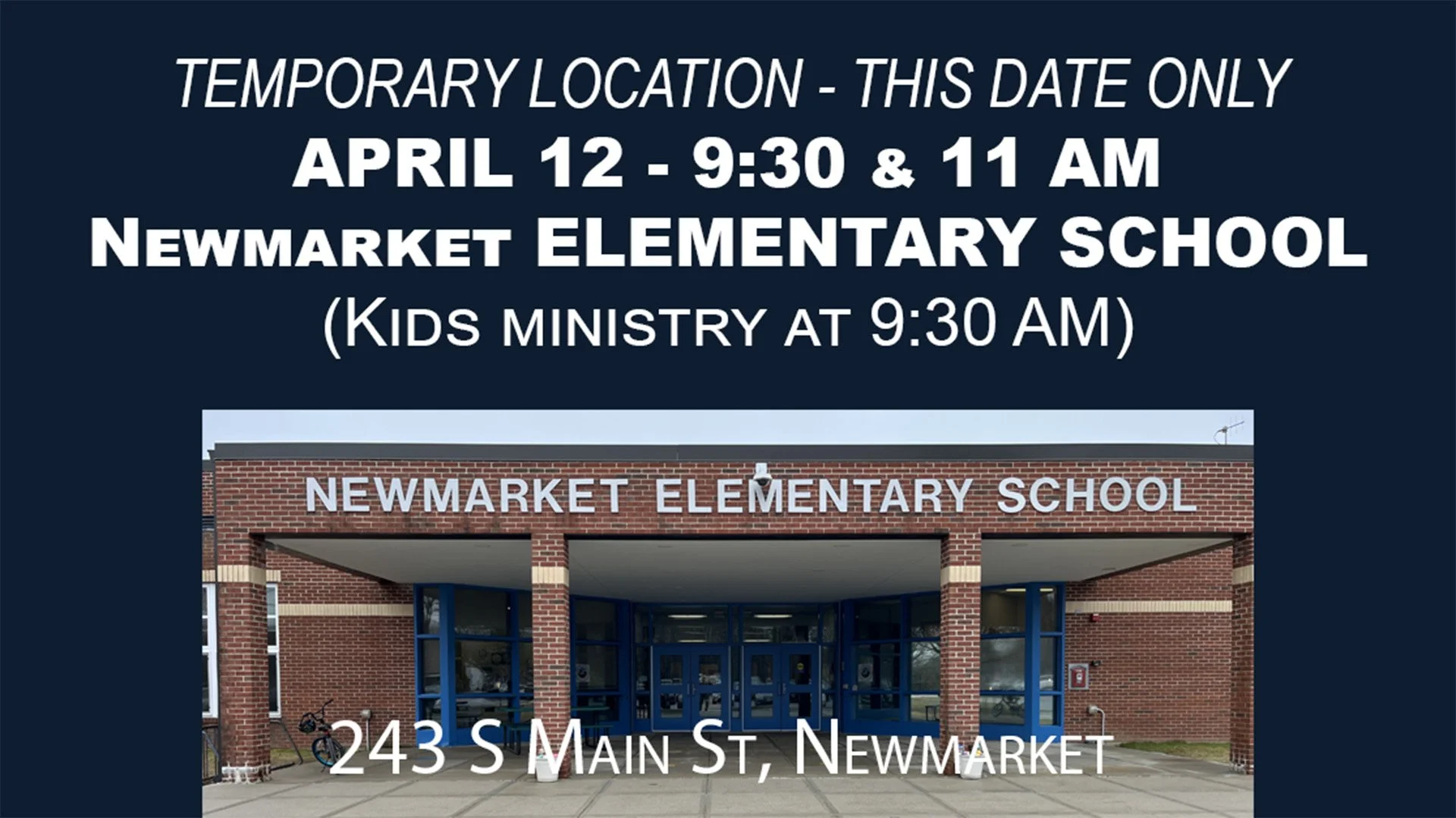 Please Note: THIS SUNDAY - APRIL 12 - NEWMARKET ELEMENTARY SCHOOL